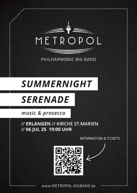 In den vergangenen Jahren unterwegs in der gesamten Metropolregion kehrt Frankens größte Crossover-Formation zurück zu ihren Wurzeln und präsentiert erstmals im Rahmen der Sommertour ihr Konzert „Summernight Serenade“ in der kath. Kirche St. Marien. Die Formation bedankt sich damit bei ihrem treuen Publikum in Erlangen und dafür, im Seelsorgebereich Erlangen-Süd immer Unterstützer und, nicht nur probetechnisch, ein Zuhause zu haben.